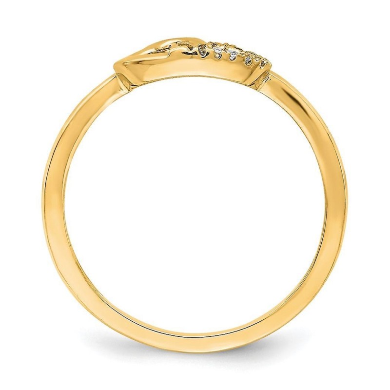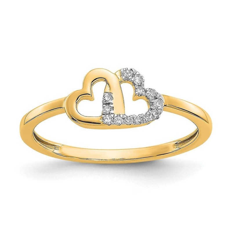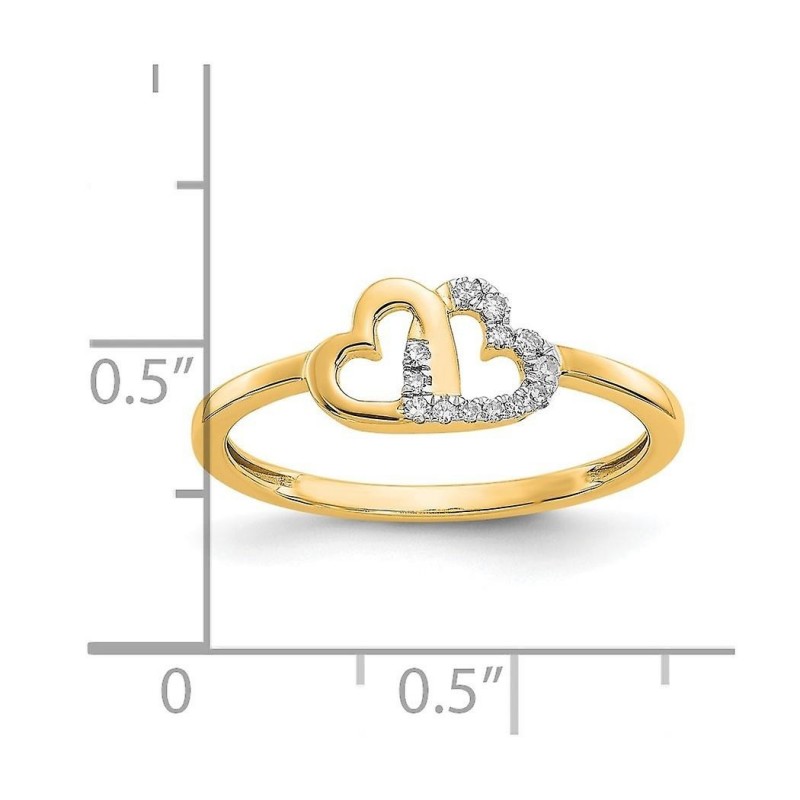 Zlatni prsten s dvostrukim srcem od 10 karata s dijamantima od 2 mm, veličina 7.00, idealan kao pokl