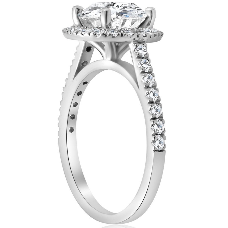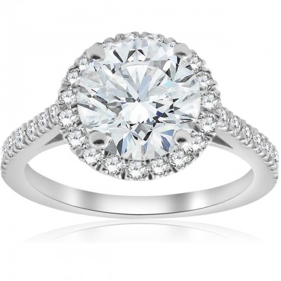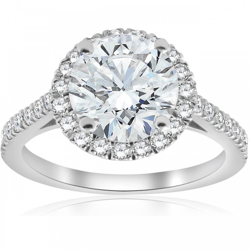Fiolder prsten od 14-karatnog bijelog zlata s okruglim dijamantom, 2 1/2 karata, s Halo Brus