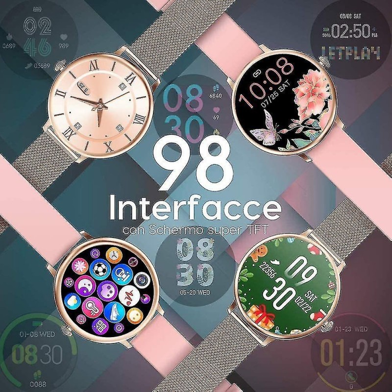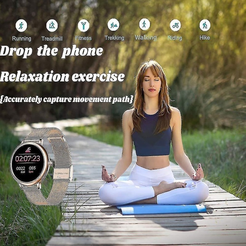 Vodootporni pametni sat s potpuno osjetljivim zaslonom Elegantni izgled ovog pametnog sata s potpuno osjetljivim zaslonom najbolji je poklon za žene. Mjeri otkucaje srca, krvni tlak, prati san, ženski fiziološki ciklus, bilježi pedometar, sportsku kilometražu, potrošnju kalorija, bilježi udaljenost, podsjeća na smjernice za vježbanje i nudi mnoge sportske načine rada. Vodootporan, otporan na znoj i kišu za svakodnevni život. 8 sportskih načina rada i IP67 vodootpornost Pratite svoje aktivnosti cijeli dan, uključujući korake, udaljenost i potrošene kalorije. 8 sportskih načina rada prati vaše podatke o kretanju kako biste prilagodili trening. Trčanje, biciklizam, nogomet itd. Možete pratiti svoje kretanje u bazenu i koristiti ih pod hladnim tušem. Obavijesti i SMS Primajte pozive, SMS poruke i poruke na društvenim mrežama s Facebooka, WhatsAppa, Twittera, Instagrama itd. Kada primite obavijest, sat će vibrirati kako bi vas podsjetio. Samo spojite narukvicu na telefon putem aplikacije i postavite je u aplikaciju. Nijedan poziv ili poruka neće biti propušteni. Monitor otkucaja srca i praćenje sna Zahvaljujući ugrađenim pametnim optičkim senzorima, uređaj za praćenje aktivnosti prati vaš otkucaj srca u stvarnom vremenu i automatski ga prepoznaje. Osim toga, učinkovito prati kvalitetu vašeg sna i pruža sveobuhvatnu analizu kvalitete sna kako bi vam pomogao u razvoju zdravijeg načina života. Kompatibilnost i ostale značajke Ovaj sat kompatibilan je s pametnim telefonima s operativnim sustavima iOS 9.0 / Android 4.4 ili novijim i Bluetooth 4.0 ili novijim. Ovaj sat također ima alarm, štopericu, daljinsko upravljanje kamerom, vremensku prognozu i podešavanje svjetline. (Nije kompatibilan s iPadom)